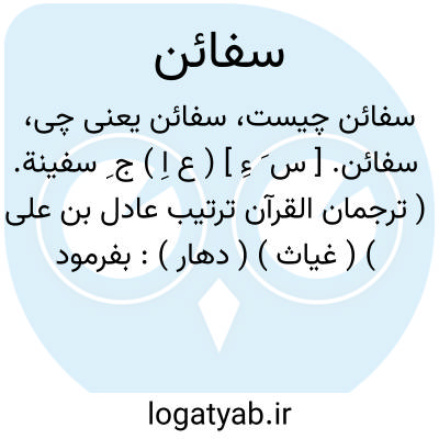 سفائن. [ س َ ءِ ] ( ع اِ ) ج ِ سفینة. ( ترجمان القرآن ترتیب عادل بن علی ) ( غیاث ) ( دهار ): بفرمود تا جواری و منشآت و مراکب و سفائن را تربیت سازد. ( بدایعالزمان فی وقایع کرمان ).