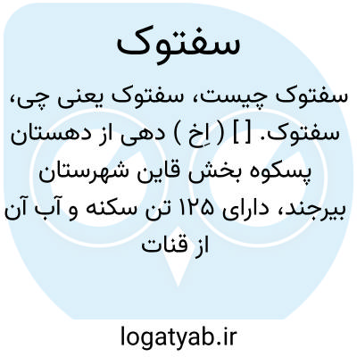 سفتوک. [ ] ( اِخ ) دهی از دهستان پسکوه بخش قاین شهرستان بیرجند، دارای 125 تن سکنه و آب آن از قنات است.محصول آن غلات، زعفران و شغل اهالی زراعت و مالداری و قالیچه بافی است. ( از فرهنگ جغرافیایی ایران ج 9 ).