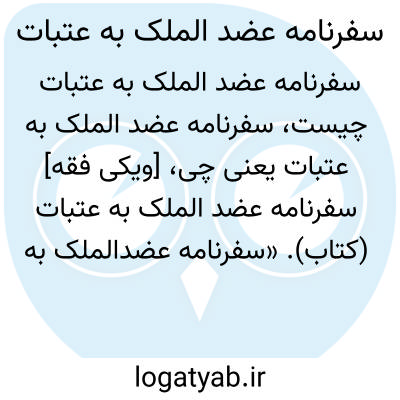 [ویکی نور] سفرنامه عضدالملک به عتبات، کتابی است به زبان فارسی نوشته علیرضا عضدالملک که به شرح سفر مولف به عتبات عالیات می پردازد.