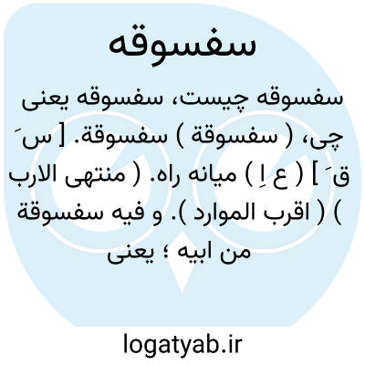 ( سفسوقة ) سفسوقة. [ س َ ق َ ] ( ع اِ ) میانه راه. ( منتهی الارب ) ( اقرب الموارد ). و فیه سفسوقة من ابیه؛ یعنی در روی شبه پدر وی است و به پدر خود مانان است. ( منتهی الارب ).