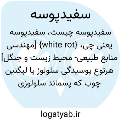 {white rot} [مهندسی منابع طبیعی- محیط زیست و جنگل] هرنوع پوسیدگی سلولوز یا لیگنین چوب که پسماند سلولوزی سفید با بافتی اسفنجی و نواری تولید می کند