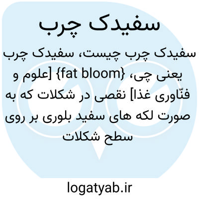 {fat bloom} [علوم و فنّاوری غذا] نقصی در شکلات که به صورت لکه های سفید بلوری بر روی سطح شکلات ظاهر می شود