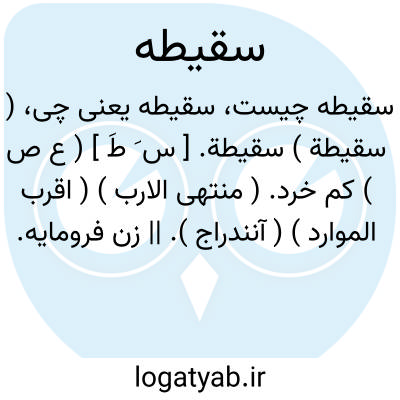 ( سقیطة ) سقیطة. [ س َ طَ ] ( ع ص ) کم خرد. ( منتهی الارب ) ( اقرب الموارد ) ( آنندراج ). || زن فرومایه. ( منتهی الارب ) ( آنندراج ).