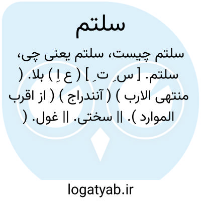 سلتم. [ س ِ ت ِ ] ( ع اِ ) بلا. ( منتهی الارب ) ( آنندراج ) ( از اقرب الموارد ). || سختی. || غول. ( منتهی الارب ) ( آنندراج ) ( مهذب الاسماء )( از اقرب الموارد ). || قحط سال سخت. ( منتهی الارب ) ( آنندراج ) ( اقرب الموارد ). تنگ سال. ( مهذب الاسماء ). || ( ص ) شتر کلان سال که از پیری همه دندان ریخته و لب زیرین او بطوری فروهشته و افتاده باشد که رفعش نتواند. ( منتهی الارب ) ( از اقرب الموارد ). || شیئی اندک و حقیر. ( منتهی الارب ).