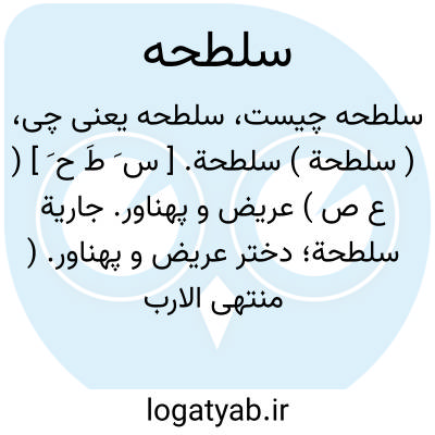 ( سلطحة ) سلطحة. [ س َ طَ ح َ ] ( ع ص ) عریض و پهناور. جاریة سلطحة؛ دختر عریض و پهناور. ( منتهی الارب ) ( آنندراج ).