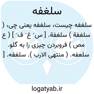 لغت نامه دهخدا ( سلغفة ) سلغفة. [ س َ غ َ ف َ ] ( ع مص ) فروبردن چیزی را به گلو. سلعفه. ( منتهی الارب ).سلغفه. [ س َ غ َ ف َ ] ( ع ص ) گاو فربه. ( منتهی الارب ). بقرة سلغفه؛ گاو فربه. ( ناظم الاطباء ).