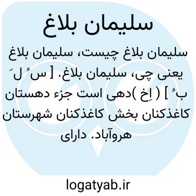 سلیمان بلاغ. [ س ُ ل َ ب ُ ] ( اِخ )دهی است جزء دهستان کاغذکنان بخش کاغذکنان شهرستان هروآباد. دارای 149 تن سکنه. آب آن از دو رشته چشمه.محصول آنجا غلات و حبوبات و سردرختی. شغل اهالی زراعت و گله داری. صنایع دستی آنان جاجیم و گلیم بافی و راه آن مالرو است. ( از فرهنگ جغرافیائی ایران ج 6 ).