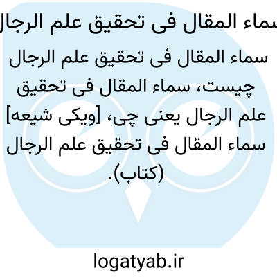 [ویکی شیعه] سماء المقال فی تحقیق علم الرجال (کتاب). سَماءُ المَقال فی تَحقیق علم الرّجال کتابی رجالی به زبان عربی تألیف ابوالهدی کلباسی اصفهانی (م ۱۳۵۶ق) که در چهار رکن تألیف گردیده و پیرامون مسائل و قواعد مهم رجالی بحث کرده است. این کتاب به رجال ابوالهدی کلباسی نیز شناخته می شود.
