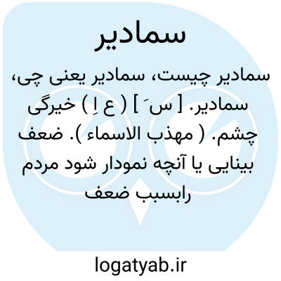 سمادیر. [ س َ ] ( ع اِ ) خیرگی چشم. ( مهذب الاسماء ). ضعف بینایی یا آنچه نمودار شود مردم رابسبب ضعف بینایی از سکر و غشی و دوران سر و پینکی. ( منتهی الارب ) ( آنندراج ). ج ِ سمدور. ( ناظم الاطباء ).