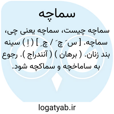 لغت نامه دهخدا سماچه. [ س َ چ َ / چ ِ ] ( اِ ) سینه بند زنان. ( برهان ) ( آنندراج ). رجوع به ساماخچه و سماکچه شود.