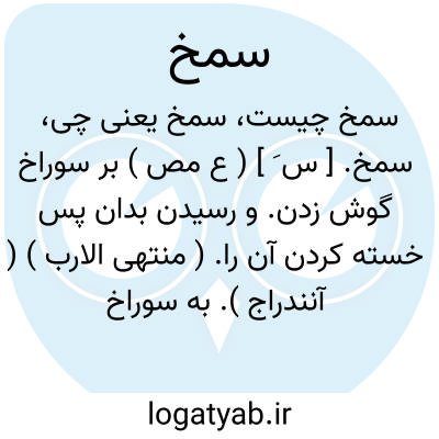 سمخ. [ س َ ] ( ع مص ) بر سوراخ گوش زدن. و رسیدن بدان پس خسته کردن آن را. ( منتهی الارب ) ( آنندراج ). به سوراخ گوش زدن چنانکه آن را خسته کند. ( از اقرب الموارد ). || برآمدن یا شکوفه برآوردن زراعت. ( منتهی الارب ) ( آنندراج ).