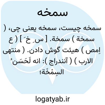لغت نامه دهخدا ( سمخة ) سمخة. [ س ِ خ َ ] ( ع اِمص ) هیئت گوش دادن. ( منتهی الارب ) ( آنندراج ): انه لَحَسَن ُ السِمْخَة؛ نیکو نگاهدارنده مسموعات است. ( منتهی الارب ).