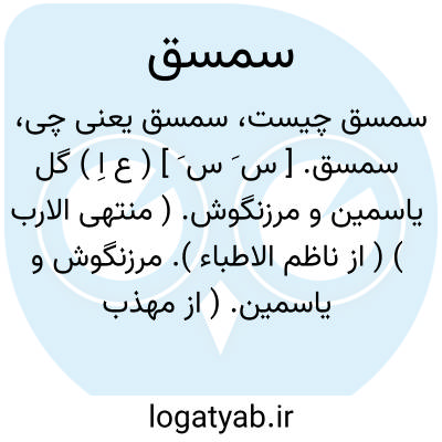 سمسق. [ س َ س َ ] ( ع اِ ) گل یاسمین و مرزنگوش. ( منتهی الارب ) ( از ناظم الاطباء ). مرزنگوش و یاسمین. ( از مهذب الاسماء ). مرزنگوش و آن گیاهی باشد دوابی که به عربی آذان الفارخوانند. سمسق عربی است و به معنی یاسمین است. ( برهان ) ( آنندراج ). مرزنجوش. ( تحفه حکیم مؤمن ). و بصورتهای سِمسِق، سُمسُق و سُمسَق نیز آمده است. ( از منتهی الارب ) ( ناظم الاطباء ).