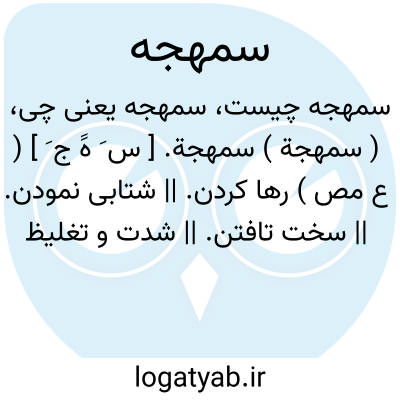 ( سمهجة ) سمهجة. [ س َ هََ ج َ ] ( ع مص ) رها کردن. || شتابی نمودن. || سخت تافتن. || شدت و تغلیظ نمودن در سوگند. ( منتهی الارب ) ( آنندراج ). || روایی دادن در هم را. || دروغ کردن سخن. ( منتهی الارب ) ( اقرب الموارد ).