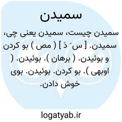 سمیدن. [ س َ دَ ] ( مص ) بو کردن و بوئیدن. ( برهان ). بوئیدن. ( اوبهی ). بو کردن. بوئیدن. بوی خوش دادن. ( ناظم الاطباء ).