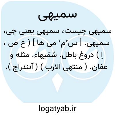 لغت نامه دهخدا سمیهی. [ س ُم ْ می ها ] ( ع ص، اِ ) دروغ باطل. سُمَیهاء. مثله و عفان. ( منتهی الارب ) ( آنندراج ).