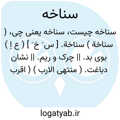 ( سناخة ) سناخة. [ س َ خ َ ] ( ع اِ ) بوی بد. || چرک و ریم. || نشان دباغت. ( منتهی الارب ) ( اقرب الموارد ) ( آنندراج ).