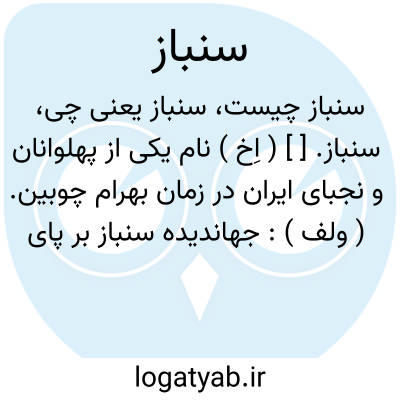 سنباز. [ ] ( اِخ ) نام یکی از پهلوانان و نجبای ایران در زمان بهرام چوبین. ( ولف ):