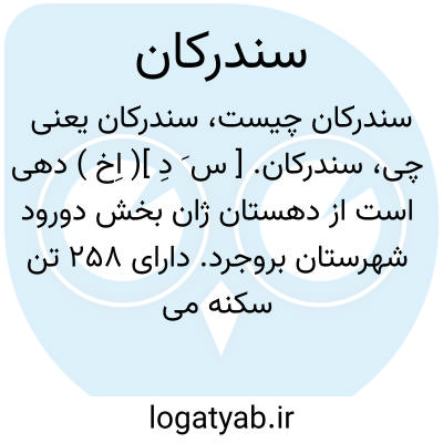 سندرکان. [ س َ دِ ]( اِخ ) دهی است از دهستان ژان بخش دورود شهرستان بروجرد. دارای 258 تن سکنه می باشد. آب آن از قنات و محصول آنجا غلات است. ( از فرهنگ جغرافیائی ایران ج 6 ).