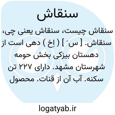 سنقاش. [ س َ ] ( اِخ ) دهی است از دهستان بیزکی بخش حومه شهرستان مشهد. دارای 227 تن سکنه. آب آن از قنات. محصول آنجا غلات، بنشن و شغل اهالی زراعت است. ( از فرهنگ جغرافیائی ایران ج 9 ).