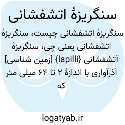{lapilli} [زمین شناسی] آذرآواری با اندازۀ 2 تا 64 میلی متر که منشأ آن ممکن است اصلی یا فرعی یا تصادفی باشد