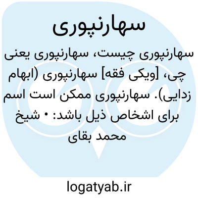 [ویکی فقه] سهارنپوری (ابهام زدایی). سهارنپوری ممکن است اسم برای اشخاص ذیل باشد: • شیخ محمد بقای سهارنپوری، بَقایِ سَهارَنپوری، شیخ محمد، شاعر، نویسنده و مورّخ فارسی زبان شبه قاره، متخلص به بقا• عبدالرحیم سهارنپوری، سَهارَنپوری، عبدالرحیم از مشایخ مشهور هند در قرن سیزدهم هجری/ نوزدهم میلادی