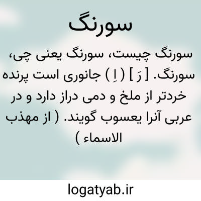 سورنگ. [ رَ ] ( اِ ) جانوری است پرنده خردتر از ملخ و دمی دراز دارد و در عربی آنرا یعسوب گویند. ( از مهذب الاسماء ) ( یادداشت بخط مؤلف ).