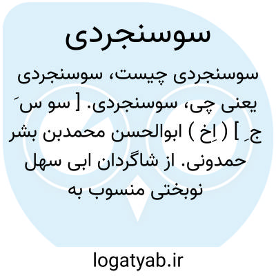 لغت نامه دهخدا سوسنجردی. [ سو س َ ج ِ ] ( اِخ ) ابوالحسن محمدبن بشر حمدونی. از شاگردان ابی سهل نوبختی منسوب به آل حمدون از متکلمین شیعه واز اوست: کتاب الانفاذ فی الامامة. ( از ابن الندیم ).