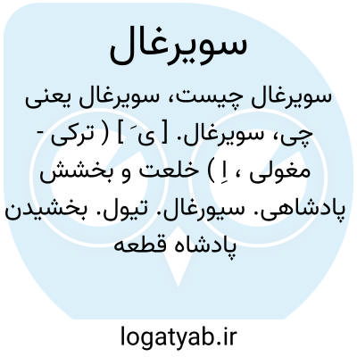 لغت نامه دهخدا سویرغال. [ ی َ ] ( ترکی - مغولی، اِ ) خلعت و بخشش پادشاهی. سیورغال. تیول. بخشیدن پادشاه قطعه زمین یا ده یا قصبه ای بکسی که بتصرف ابدی وی باشد. ( ناظم الاطباء ) ( شعوری ج 2 ص 107 ). رجوع به سیورغال شود.