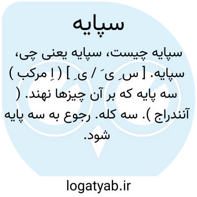 سپایه. [ س ِ ی َ / ی ِ ] ( اِ مرکب ) سه پایه که بر آن چیزها نهند. ( آنندراج ). سه کله. رجوع به سه پایه شود.