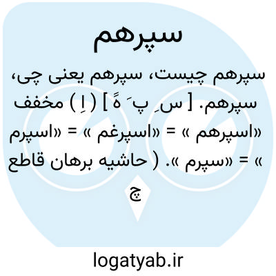 سپرهم. [ س ِ پ َ هََ ] ( اِ ) مخفف «اسپرهم » = «اسپرغم » = «اسپرم » = «سپرم ». ( حاشیه برهان قاطع چ معین ). سپرغم که ریحان باشد. ( برهان ) ( آنندراج ).