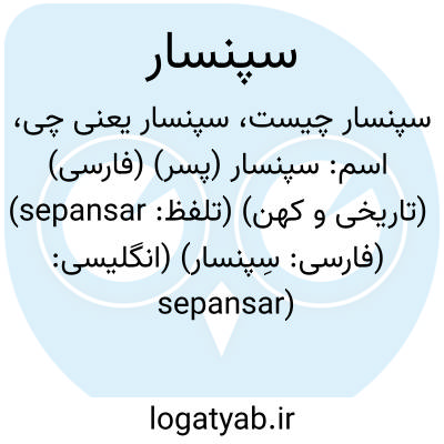 اسم: سپنسار (پسر) (فارسی) (تاریخی و کهن) (تلفظ: sepansar) (فارسی: سِپنسار) (انگلیسی: sepansar)