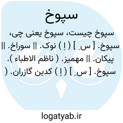 سپوخ. [ س ِ ] ( اِ ) نوک. || سوراخ. || پیکان. || مهمیز. ( ناظم الاطباء ).