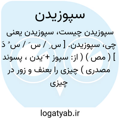 سپوزیدن. [ س ِ / س َ / س ُ دَ ] ( مص ) ( از: سپوز + َیدن، پسوند مصدری ) چیزی را بعنف و زور در چیزی فروبردن. ( غیاث ) ( آنندراج ):
