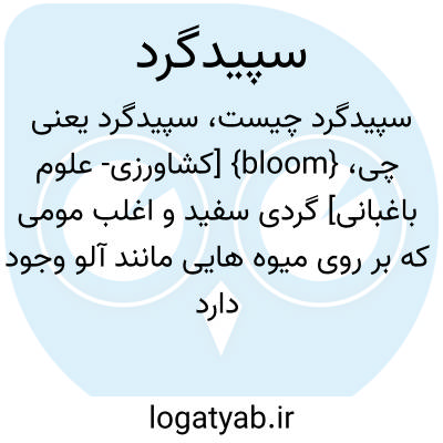 {bloom} [کشاورزی- علوم باغبانی] گردی سفید و اغلب مومی که بر روی میوه هایی مانند آلو وجود دارد
