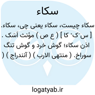 سکاء. [ س َک ْ کا ] ( ع ص ) مؤنث اَسَک. اذن سکاء؛ گوش خرد و گوش تنگ سوراخ. ( منتهی الارب ) ( آنندراج ) ( مهذب الاسماء ). || زره تنگ. ( منتهی الارب ) ( از آنندراج ).