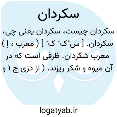 سکردان. [ س ُک ْ ک َ ] ( معرب، اِ ) معرب شکردان. ظرفی است که در آن میوه و شکر ریزند. ( از دزی ج 1 و نشوءاللغة ص 98 ).