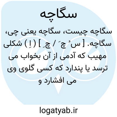سگاچه. [ س ُ چ َ / چ ِ ] ( اِ ) شکلی مهیب که آدمی از آن بخواب می ترسد یا پندارد که کسی گلوی وی می افشارد و به عربی کابوس نامند. ( غیاث ).