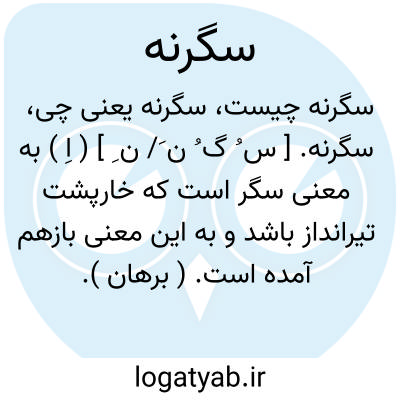 سگرنه. [ س ُ گ ُ ن َ/ ن ِ ] ( اِ ) به معنی سگر است که خارپشت تیرانداز باشد و به این معنی بازهم آمده است. ( برهان ). رکاسه. ( الفاظ الادویه ). رکاشه است و آن را سغر و سغرنه نیز گویند. ( جهانگیری ). رجوع به سگر و سغر و سغرنه شود.