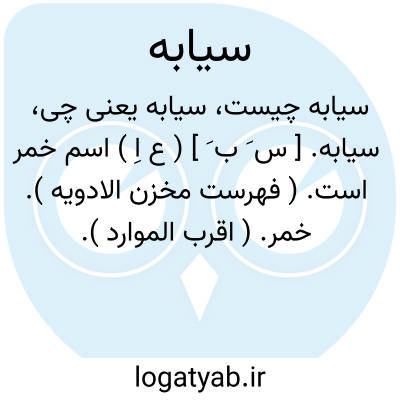 لغت نامه دهخدا سیابه. [ س َ ب َ ] ( ع اِ ) اسم خمر است. ( فهرست مخزن الادویه ). خمر. ( اقرب الموارد ).