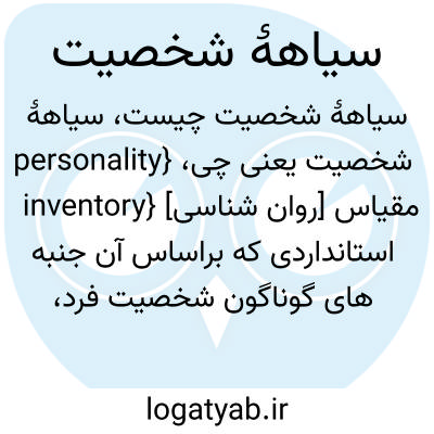 {personality inventory} [روان شناسی] مقیاس استانداردی که براساس آن جنبه های گوناگون شخصیت فرد، با توجه به پاسخ هایی که او به فهرستی از موقعیت ها یا خصایص می دهد، ارزیابی می شود