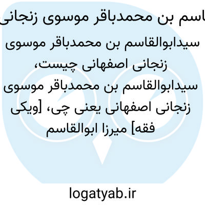 حاج میرزا ابوالقاسم بن سیّدمحمّدباقر بن سیّدعلی نقی موسوی زنجانی عالم فاضل، محقّق و مجتهد، فقیه اصولی، در اصفهان متولّد شده، و نزد آقا میرزا هاشم چهارسوقی و حاج میرزا بدیع درب امامی تلمّذ نمود، سپس در نجف اشرف از درس حاج میرزا حبیب اللّه رشتی و ملاّلطف اللّه مازندرانی بهره گرفت، و از آن دو، و نیز شیخ الشّریعه اصفهانی و محمّد ایروانی اجازه دریافت نمود. پس از بازگشت به اصفهان، به تدریس و اقامه جماعت و ترویج دین قیام نموده، در قضایای بابی کشی در سال ۱۳۲۱ق در اصفهان به حکم فتوای ایشان بوده، و در امر به معروف و نهی از منکر، ساعی و کوشا و در عموم پیش آمدهای اصفهان در دوره ریاست آقایان مسجد شاه با آنان یار و مددکار بوده است، در نهضت مشروطه نیز از طرفداران حاج آقا نوراللّه نجفی اصفهانی بود، سرانجام در رجب ۱۳۳۶ق در اصفهان وفات یافت، و در تکیه ای مخصوص در تخت فولاد مدفون گردید.