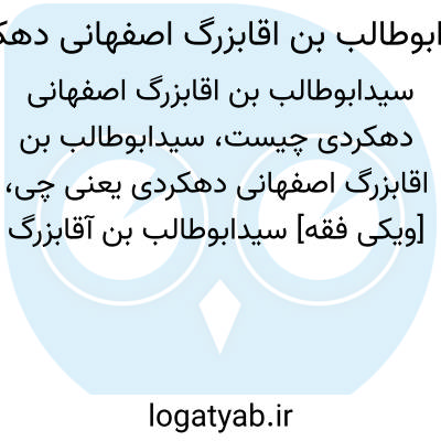 [ویکی فقه] سیدابوطالب بن آقابزرگ اصفهانی دهکردی. سیدابوطالب بن آقابزرگ اصفهانی دهکردی، از هنرمندان و خوشنویسان اصفهان بوده است.