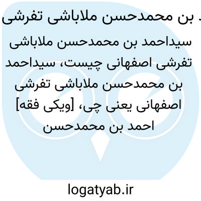 [ویکی فقه] احمد بن محمدحسن ملاباشی تفرشی اصفهانی، از علما و فضلای اصفهان در قرن چهارده هجری بوده است.