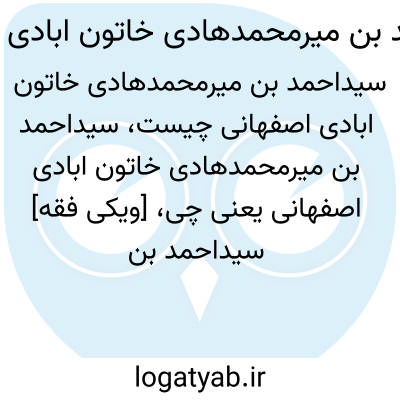 [ویکی فقه] سیداحمد بن میرمحمدهادی خاتون آبادی اصفهانی. سیداحمد بن میرمحمدهادی خاتون آبادی اصفهانی، از علماء و فضلای اصفهان در قرن دوازدهم هجری بوده است.
