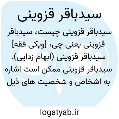[ویکی فقه] سیدباقر قزوینی (ابهام زدایی). سیدباقر قزوینی ممکن است اشاره به اشخاص و شخصیت های ذیل باشد: • سیدباقر بن سیداحمد قزوینی، از عالمان بنام شیعی و فقیهان مشهور عراق در نیمۀ اول سدۀ ۱۳ق/۱۹م و از افراد مشهور آل قزوینی• سیدباقر بن سیدهادی قزوینی، سیدباقر بن هادی بن صالح، عالم، ادیب و شاعر از افراد بنام آل قزوینی