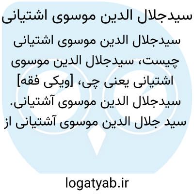 [ویکی فقه] سیدجلال الدین موسوی آشتیانی. سید جلال الدین موسوی آشتیانی از اساتید معاصر فلسفه اسلامی و عهده دار تدریس فلسفه و عرفان در حوزه و دانشگاه فردوسی مشهد و دارای تالیفات بسیاری در این زمینه هستند.