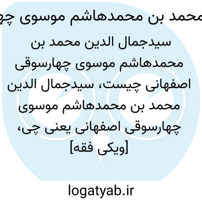 [ویکی فقه] جمال الدین محمد بن محمدهاشم موسوی چهارسوقی، عالم فاضل متقی در اصفهان می باشد.