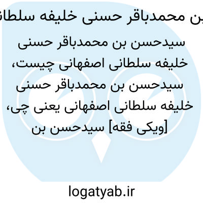 [ویکی فقه] سیدحسن بن محمدباقر حسنی خلیفه سلطانی اصفهانی، از اجّله علماء و فقهاء و محدّثین در قرن دوازدهم هجری می باشد.