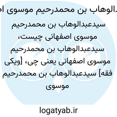 [ویکی فقه] سیدعبدالوهاب بن محمدرحیم موسوی اصفهانی، از شعرای اصفهان در قرن ۱۲ هجری بوده است.